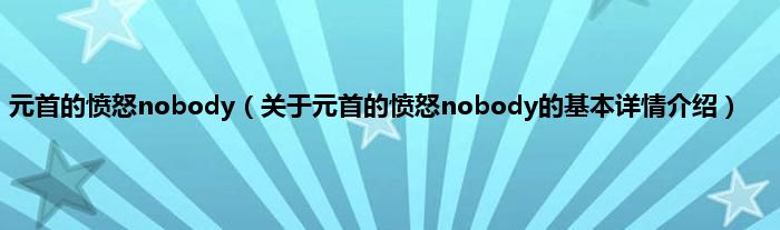 本文关于元首的愤怒nobody的基本详情介绍就讲解完毕,希望对大家有所帮助。