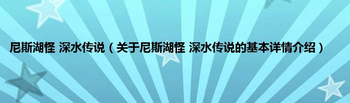 本文关于尼斯湖怪 深水传说的基本详情介绍就讲解完毕,希望对大家有所帮助。