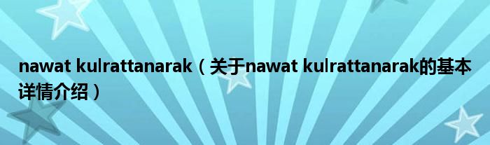 本文关于nawat kulrattanarak的基本详情介绍就讲解完毕,希望对大家有所帮助。