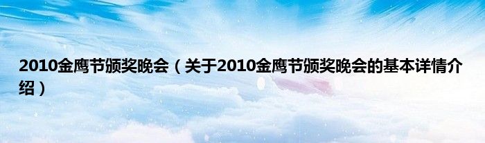 本文关于2010金鹰节颁奖晚会的基本详情介绍就讲解完毕,希望对大家有所帮助。