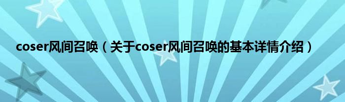 本文关于coser风间召唤的基本详情介绍就讲解完毕,希望对大家有所帮助。