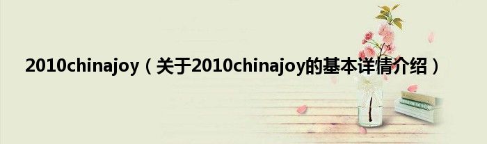 本文关于2010chinajoy的基本详情介绍就讲解完毕,希望对大家有所帮助。
