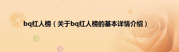 本文关于bq红人榜的基本详情介绍就讲解完毕,希望对大家有所帮助。