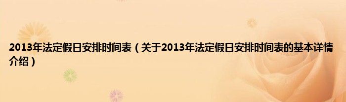 本文关于2013年法定假日安排时间表的基本详情介绍就讲解完毕,希望对大家有所帮助。