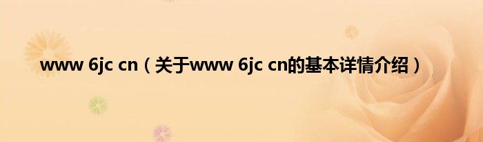 本文关于www 6jc cn的基本详情介绍就讲解完毕,希望对大家有所帮助。