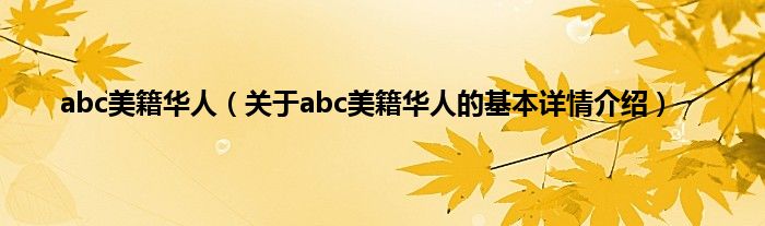 本文关于abc美籍华人的基本详情介绍就讲解完毕,希望对大家有所帮助。