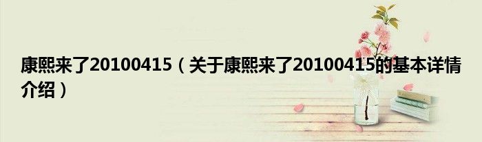 本文关于康熙来了20100415的基本详情介绍就讲解完毕,希望对大家有所帮助。