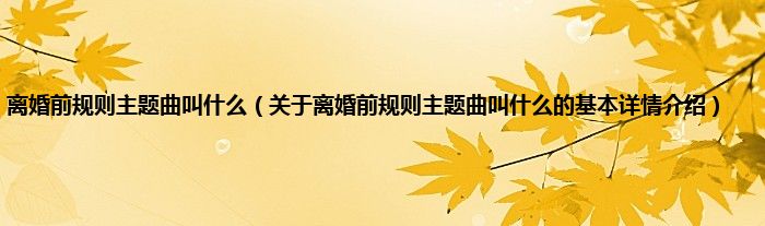 本文关于离婚前规则主题曲叫什么的基本详情介绍就讲解完毕,希望对大家有所帮助。