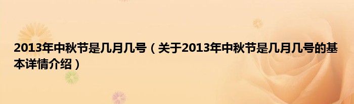 本文关于2013年中秋节是几月几号的基本详情介绍就讲解完毕,希望对大家有所帮助。
