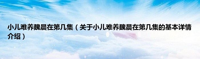 本文关于小儿难养魏晨在第几集的基本详情介绍就讲解完毕,希望对大家有所帮助。