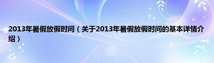 本文关于2013年暑假放假时间的基本详情介绍就讲解完毕,希望对大家有所帮助。