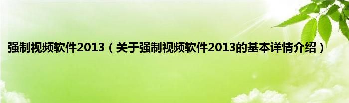 本文关于强制视频软件2013的基本详情介绍就讲解完毕,希望对大家有所帮助。