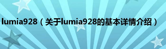 本文关于lumia928的基本详情介绍就讲解完毕,希望对大家有所帮助。