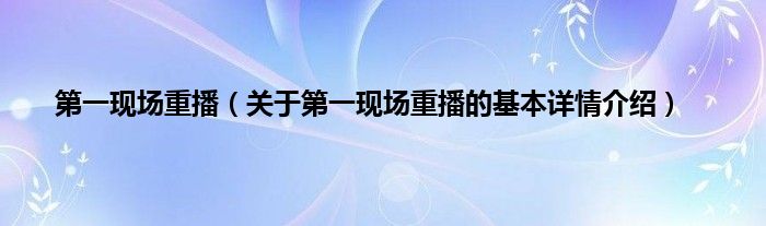 本文关于第一现场重播的基本详情介绍就讲解完毕,希望对大家有所帮助。