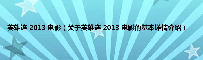 本文关于英雄连 2013 电影的基本详情介绍就讲解完毕,希望对大家有所帮助。