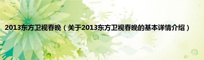 本文关于2013东方卫视春晚的基本详情介绍就讲解完毕,希望对大家有所帮助。