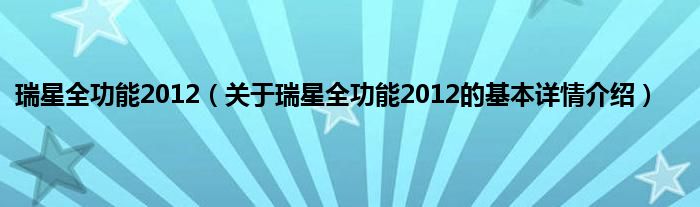 本文关于瑞星全功能2012的基本详情介绍就讲解完毕,希望对大家有所帮助。