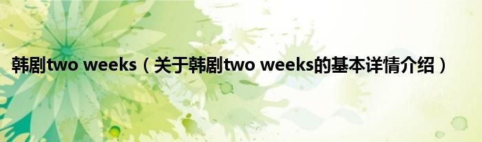 大家好我是小蝌蚪,韩剧two weeks,关于韩剧two weeks的基本详情介绍很多人还不知道,那么现在让我们一起来看看吧!