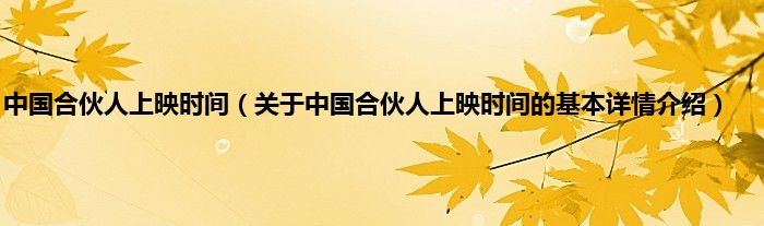 本文关于中国合伙人上映时间的基本详情介绍就讲解完毕,希望对大家有所帮助。