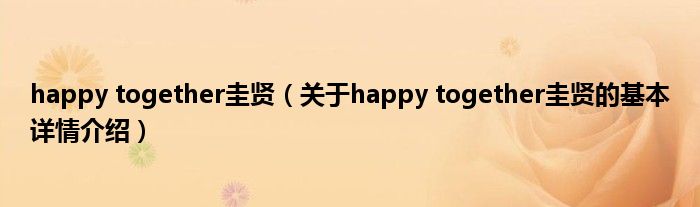 本文关于happy together圭贤的基本详情介绍就讲解完毕,希望对大家有所帮助。