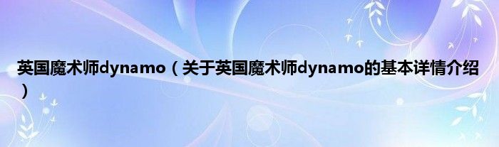 本文关于英国魔术师dynamo的基本详情介绍就讲解完毕,希望对大家有所帮助。