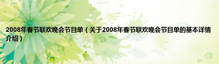 本文关于2008年春节联欢晚会节目单的基本详情介绍就讲解完毕,希望对大家有所帮助。