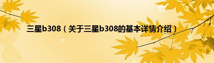 本文关于三星b308的基本详情介绍就讲解完毕,希望对大家有所帮助。