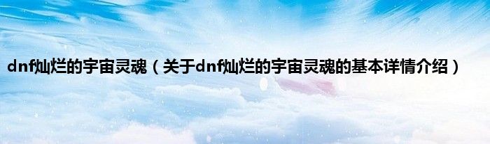 大家好我是小蝌蚪,dnf灿烂的宇宙灵魂,关于dnf灿烂的宇宙灵魂的基本详情介绍很多人还不知道,那么现在让我们一起来看看吧!
