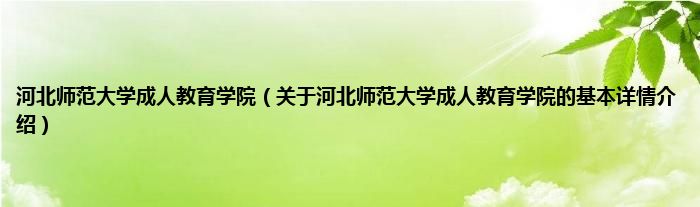 本文关于河北师范大学成人教育学院的基本详情介绍就讲解完毕,希望对大家有所帮助。