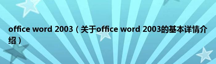 本文关于office word 2003的基本详情介绍就讲解完毕,希望对大家有所帮助。