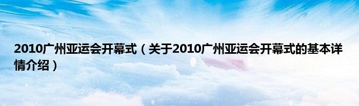 本文关于2010广州亚运会开幕式的基本详情介绍就讲解完毕,希望对大家有所帮助。
