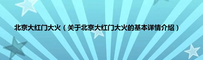本文关于北京大红门大火的基本详情介绍就讲解完毕,希望对大家有所帮助。