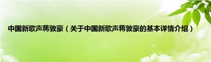 本文关于中国新歌声蒋敦豪的基本详情介绍就讲解完毕,希望对大家有所帮助。