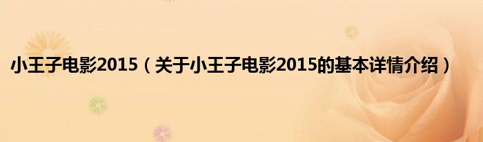 本文关于小王子电影2015的基本详情介绍就讲解完毕,希望对大家有所帮助。