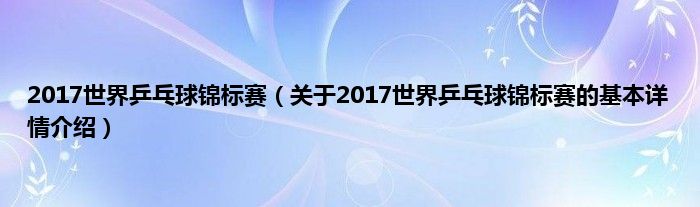 本文关于2017世界乒乓球锦标赛的基本详情介绍就讲解完毕,希望对大家有所帮助。