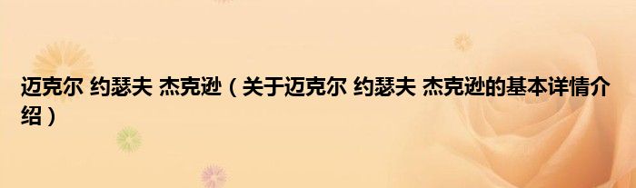本文关于迈克尔 约瑟夫 杰克逊的基本详情介绍就讲解完毕,希望对大家有所帮助。