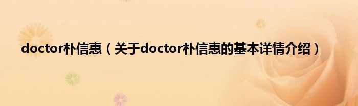 本文关于doctor朴信惠的基本详情介绍就讲解完毕,希望对大家有所帮助。