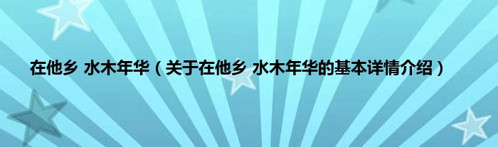 本文关于在他乡 水木年华的基本详情介绍就讲解完毕,希望对大家有所帮助。