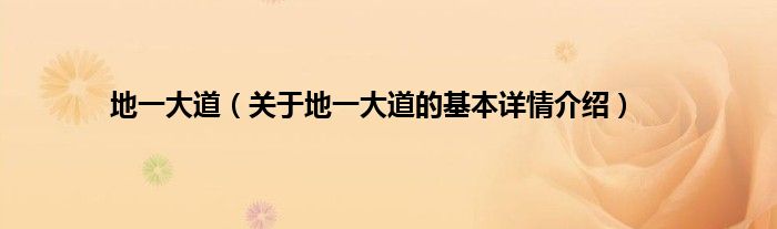 大家好我是小蝌蚪,地一大道,关于地一大道的基本详情介绍很多人还不知道,那么现在让我们一起来看看吧!