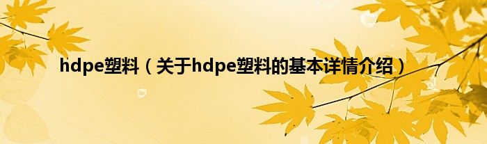 本文关于hdpe塑料的基本详情介绍就讲解完毕,希望对大家有所帮助。
