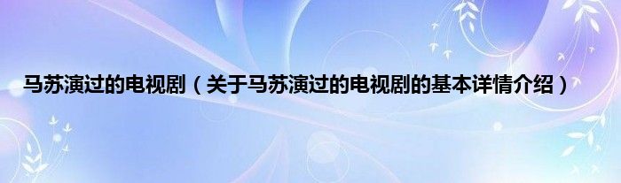 本文关于马苏演过的电视剧的基本详情介绍就讲解完毕,希望对大家有所帮助。