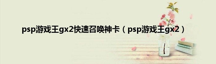 大家好,小问来为大家解答以上问题。psp游戏王gx2快速召唤神卡,psp游戏王gx2这个很多人还不知道,现在让我们一起来看看吧!