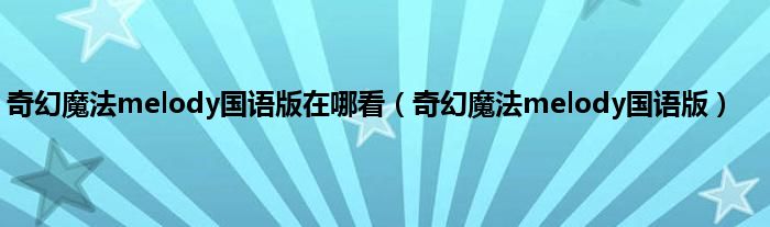 以上就是【奇幻魔法melody国语版在哪看,奇幻魔法melody国语版】相关内容。