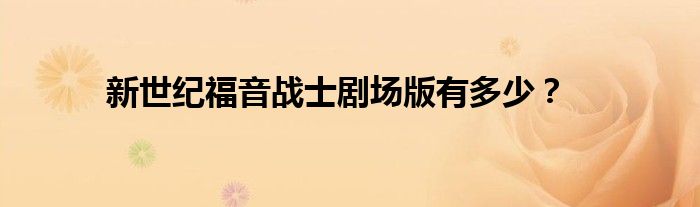 以上就是【新世纪福音战士剧场版有多少?】相关内容。