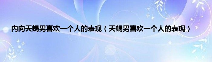 以上就是【内向天蝎男喜欢一个人的表现,天蝎男喜欢一个人的表现】相关内容。