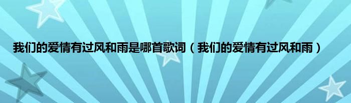 大家好,小问来为大家解答以上问题。我们的爱情有过风和雨是哪首歌词,我们的爱情有过风和雨这个很多人还不知道,现在让我们一起来看看吧!