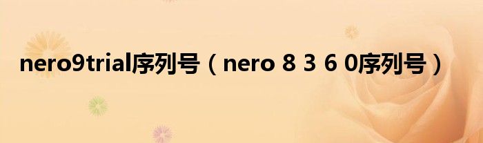 大家好,小问来为大家解答以上问题。nero9trial序列号,nero 8 3 6 0序列号这个很多人还不知道,现在让我们一起来看看吧!