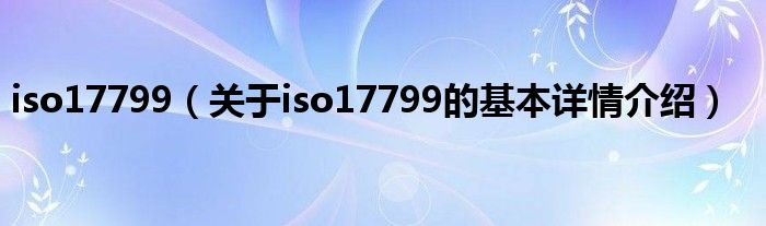 本文关于iso17799的基本详情介绍就讲解完毕,希望对大家有所帮助。