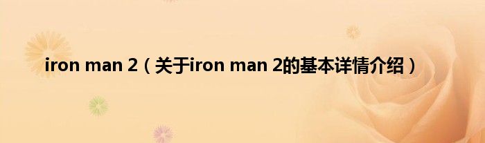本文关于iron man 2的基本详情介绍就讲解完毕,希望对大家有所帮助。