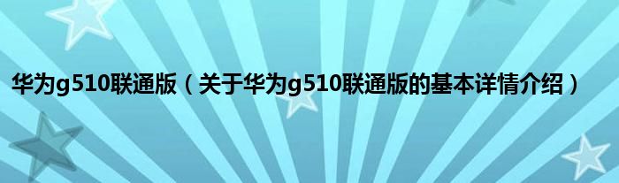 本文关于华为g510联通版的基本详情介绍就讲解完毕,希望对大家有所帮助。